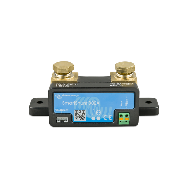 The SmartShunt is a good alternative for a BMV battery monitor, especially for systems where battery monitoring is needed but less wiring and clutter is wanted. The SmartShunt is equipped with Bluetooth, a VE.Direct port and a connection that can be used for: monitoring a second battery, midpoint monitoring or a temperature sensor.