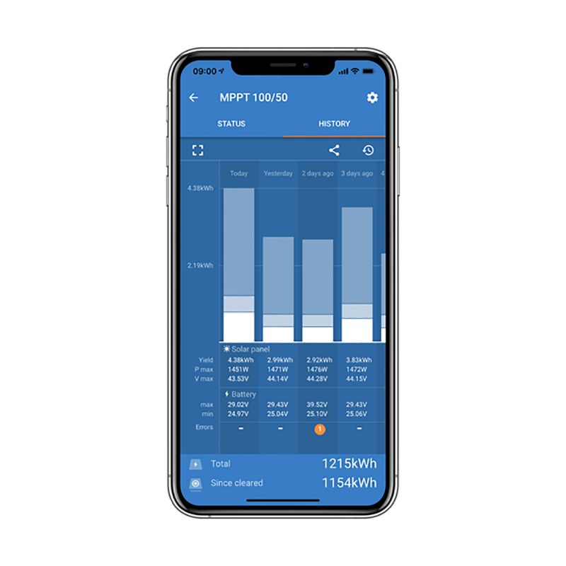 Programming, real-time data and history display options -Modern Apple and Android smartphones, tablets, macbooks and other devices: see the VE.Direct Bluetooth Smart dongle and the MPPT app discovery sheet for screenshots. VICTRON ENERGY - FROM THE NETHERLANDS