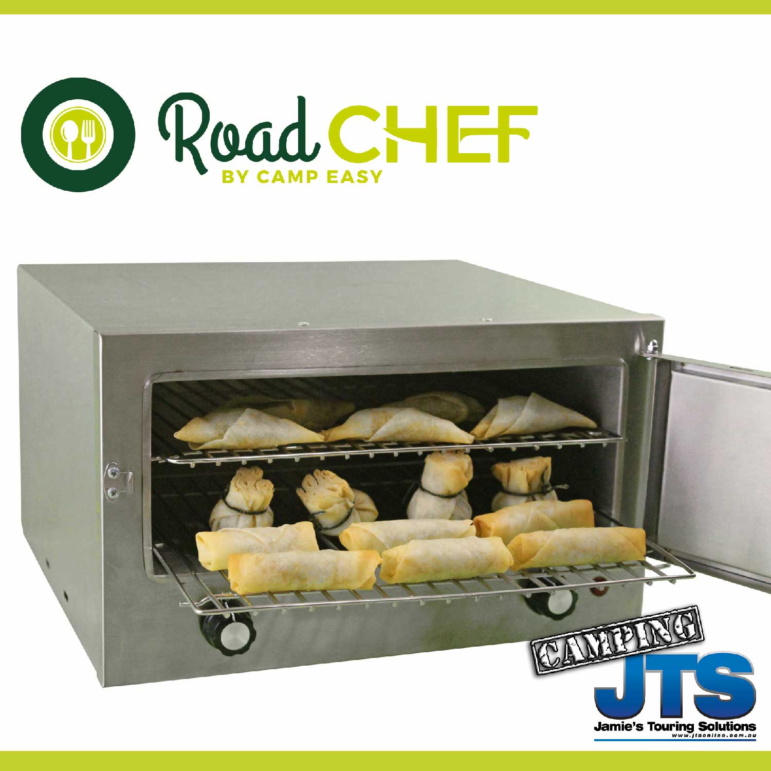 The Road Chef 12v oven will change the way you feed yourself and the family on longer journeys. The compact 12 volt oven fits comfortably in the smallest car and will operate from the 12 volt cigarette lighter in your vehicle.